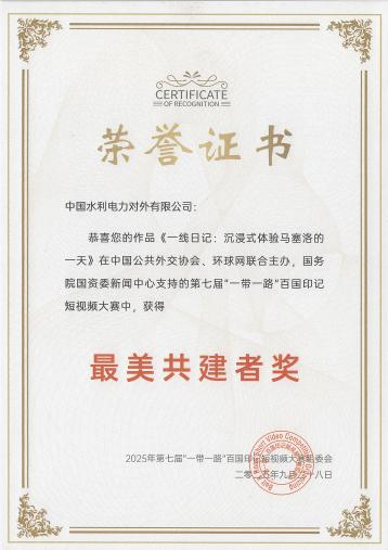 公司作品《一线日记:沉浸式体验马塞洛的一天》荣获第七届“一带一路”百国印记短视频大赛“最美共建者奖”