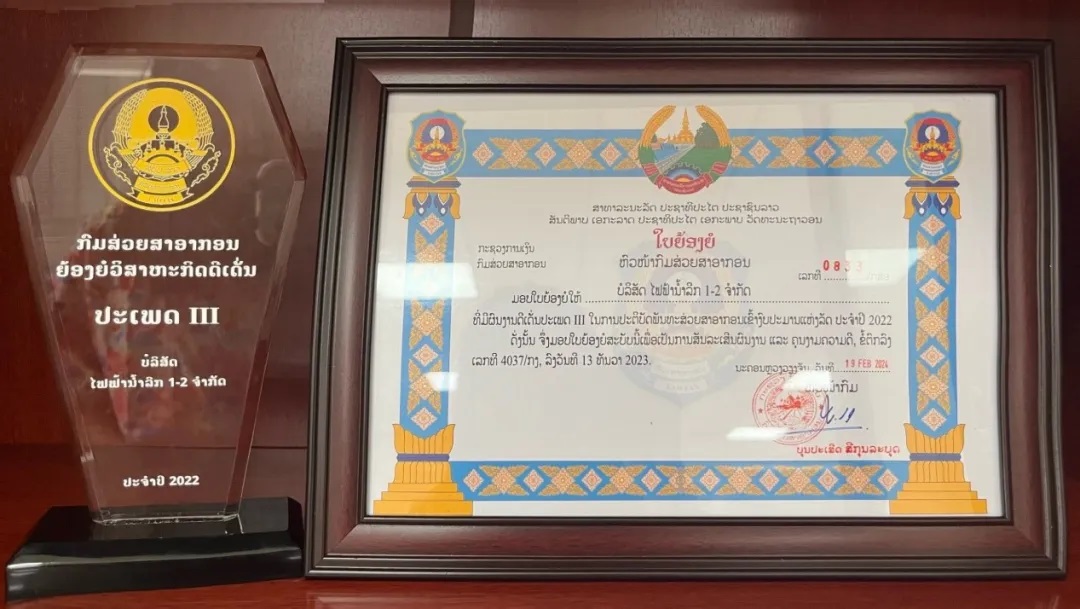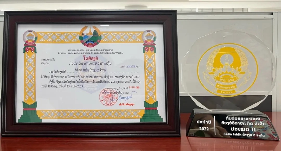 近日,老挝南立电站有限责任公司、南椰2电站有限责任公司分别获评老挝2022年度国家纳税义务二等奖和三等奖,这也是南椰2电站有限责任公司第二次获得此项荣誉。