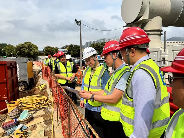 万启洲听取了香港分公司及项目团队工作汇报,先后赴小西湾健康中心、小西湾幼稚园、沙田污水处理厂搬迁项目及元朗油塘渠务项目开展实地调研,详细了解各项目总体进展、质量管理及安全管控措施,并与在港员工进行座谈交流。