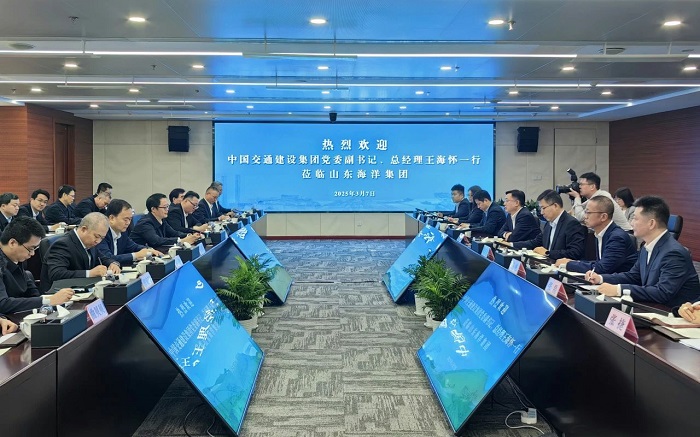 在与山东海洋集团党委书记、董事长姜国栋,党委副书记、董事、总经理陈江光座谈交流时,王海怀表示,中交集团是全球领先的特大型基础设施综合服务商,在大交通、大城市、江河湖海库领域产业链完整,国际化程度高,能够为客户提供全产业链一体化服务。中交集团与山东海洋集团产业链高度互补,双方合作空间大、前景广阔。希望双方发挥各自优势,在海洋工程、海洋装备、沿海港口、内河运输等方面加强合作,共同提升发展质效。姜国栋表示,山东海洋集团以践行海洋强国战略、服务海洋强省和交通强国山东示范区建设为己任,致力于打造山东省海洋产业核心投资运营平台、海洋科技成果转化平台。希望双方拓宽合作空间,打造创新联合体,深化在干散货运输、江海联运、海洋业务等方面合作,实现共赢发展。山东海洋集团党委副书记、董事、工会主席姜文鑫,总工程师王礼参加座谈交流。